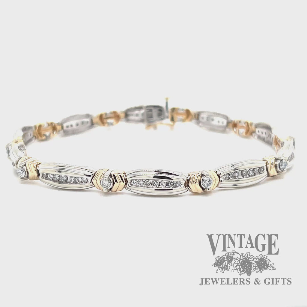 7.25" two tone 14k gold and diamond bracelet
