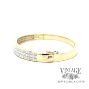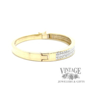 - Diamond hinged 18 karat solid gold bangle bracelet.