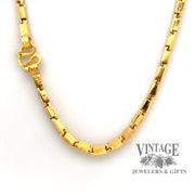 This 24 karat yellow gold chain is 17" in length with 2.3 mm square links and has a "harp" style 24 karat clasp.