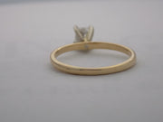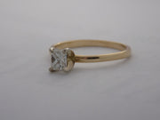 A .60 carat natural princess cut diamond, J color, VS1 clarity is set in this four prong 14k yellow gold solitaire ring.
