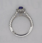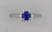 Tacori platinum halo diamond ring with blue sapphire center stone