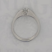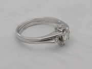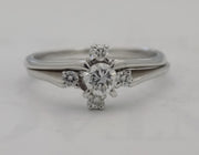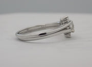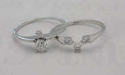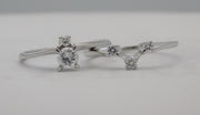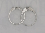 18 karat white gold Estate two piece diamond wedding set. The set has a 1/8 carat round brilliant cut center diamond flanked on the sides as well as top and bottom by a smaller round brilliant cut prong set diamond. The total diamond weight of the set is 1/4 carat and the diamonds are Color F, Clarity VS. The ring is size 6.
