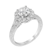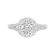 Hand engraved diamond halo 14kw gold for a 3/4 carat diamond.