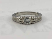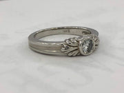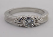 Bezel set in this 14k, white gold solitaire ring is this sparkling round natural diamond, H color, VS2 clarity and weighing .34 carats.