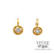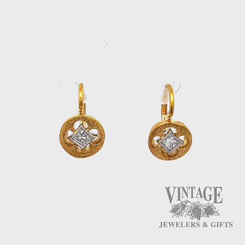 - Stamped 22k yellow and platinum for the earring front, satin finish with clover like cut out design
