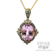 • Kunzite rose gold pendant with chocolate diamond accents and black rhodium.