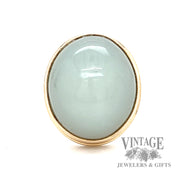 - Oval, cabochon, pale blue-green prasiolite (quartz), bezel set, estimated 27.6 carats total weight