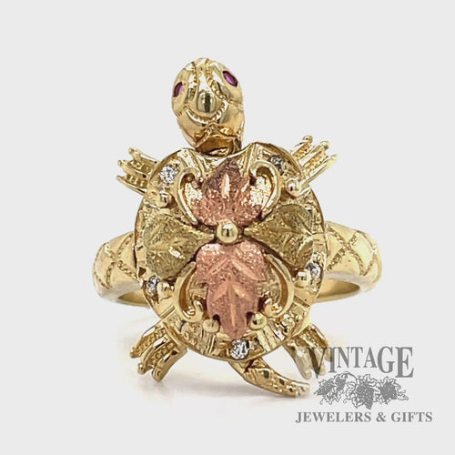 Diamond and ruby 14k black hills gold turtle ring