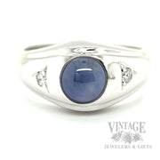 Blue Star Sapphire Diamond Accented 14k White Gold Ring