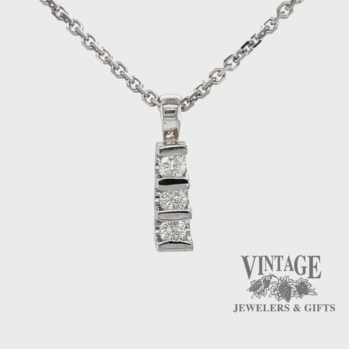 Yesterday, Today, and Tomorrow. That's what this pendant represents. The estate 14 karat white gold pendant has a total diamond weight of .33 carats of I1 quality diamonds. They are set in a linear fashion and secured with bars. Chain sold separately.