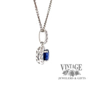 18k white gold Blue sapphire and diamond halo pendant