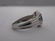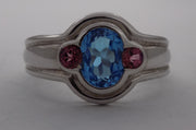 Oval blue topaz, pink tourmaline white gold ring