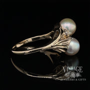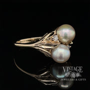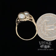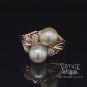 2 pearl with diamonds ring in 14ky gold