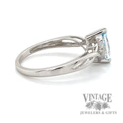 - Sky blue topaz and diamond 10 karat white gold bypass ring.