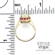 - White coober pedy opal cabochon weighing an estimated .93 carats. Excellent play of color displaying reds, orange, yellow, green and blues.