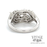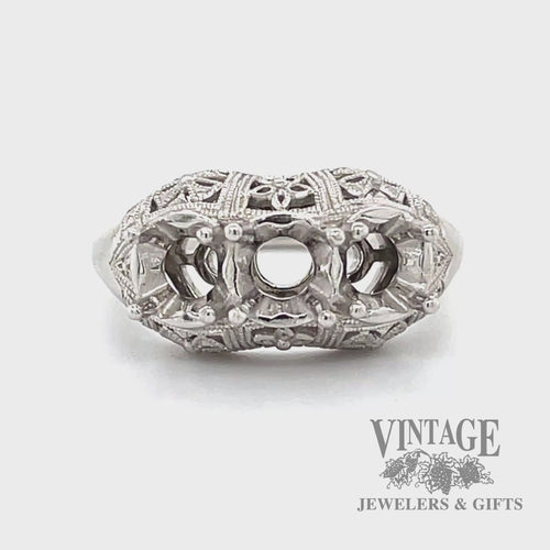 • Platinum vintage inspired 3 stone ring mounting with bow and flower design on gallery