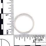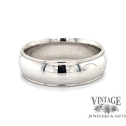 This classic style 14 karat white gold comfort fit wedding band has a mill-grain edge and is 7 mm in width. Finger size 11.25.