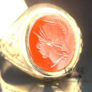 Roman centurion sardonyx intaglio 9k gold vintage ring
