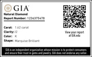 1.62 carat, marquise shape, K color, I1 clarity, natural diamond, GIA graded