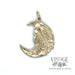 Art nouveau gazing woman crescent moon 14k gold pendant