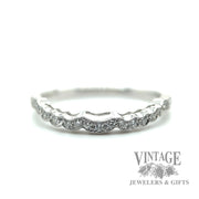 Engraved 14k white gold stackable natural diamond ring .08ct
