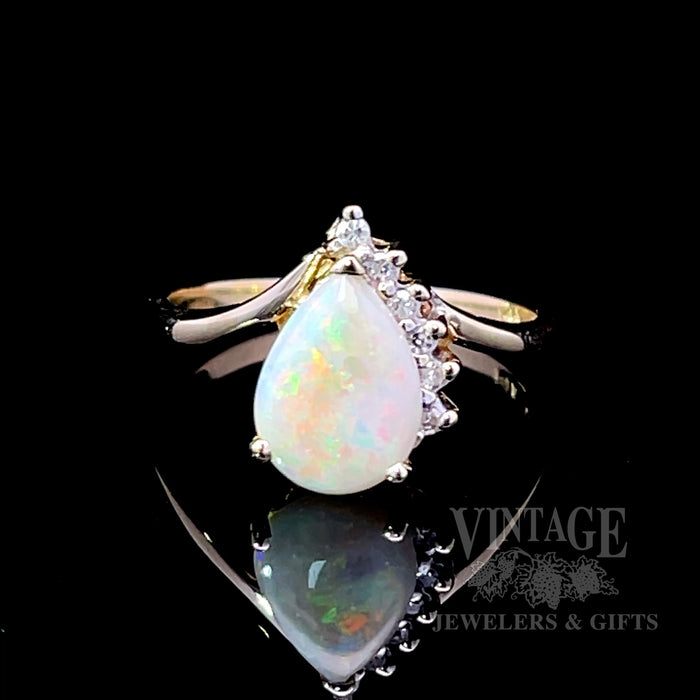 Pear shaped opal and diamond ring