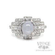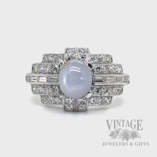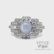 Silver Star Sapphire and Diamond Art Deco Platinum Ring