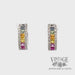 - 12 natural, princess cut, sapphires in rainbow of blue, green, yellow, orange, and pink line the center channel in each earring, estimated 1.4 carats total weight