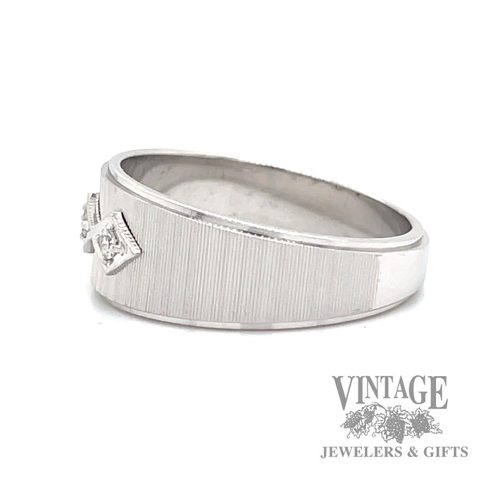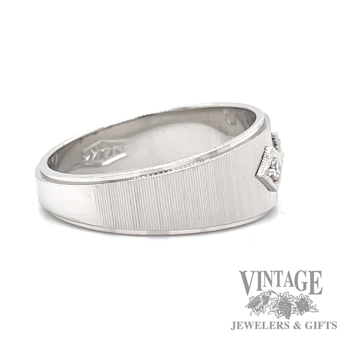 - Stamped 14k white gold textured, retro style tapered ring band