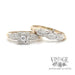 - Stamped 14k yellow and white gold wedding set includes engagement ring and wedding band