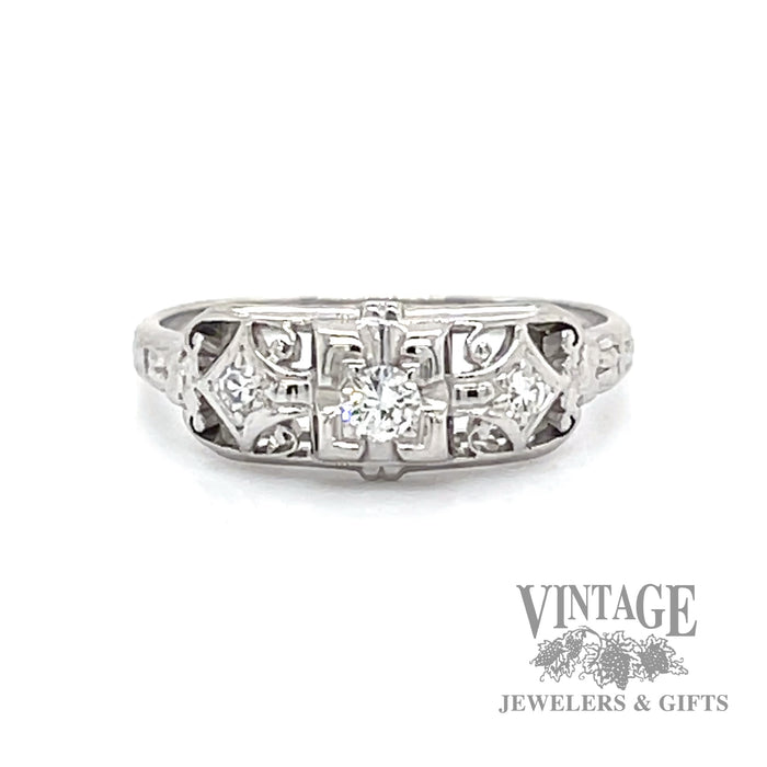• Stamped 18k white gold vintage ring with intricate details throughout