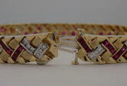 Yellow gold caliber cut natural ruby/diamond bracelet